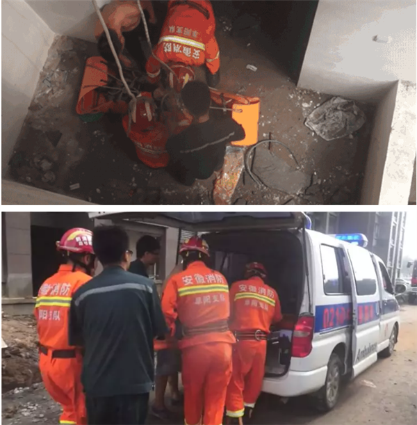 7月11日上午9点半左右,阜阳市阜南县一在建工地上,一位工人在安装水管时,一时不慎跌落到地下室,腰部受伤,动弹不得。闻讯后,辖区救援力量很快赶到了现场,在现场,只见受伤工人年纪较大,正趴在墙上,据了解